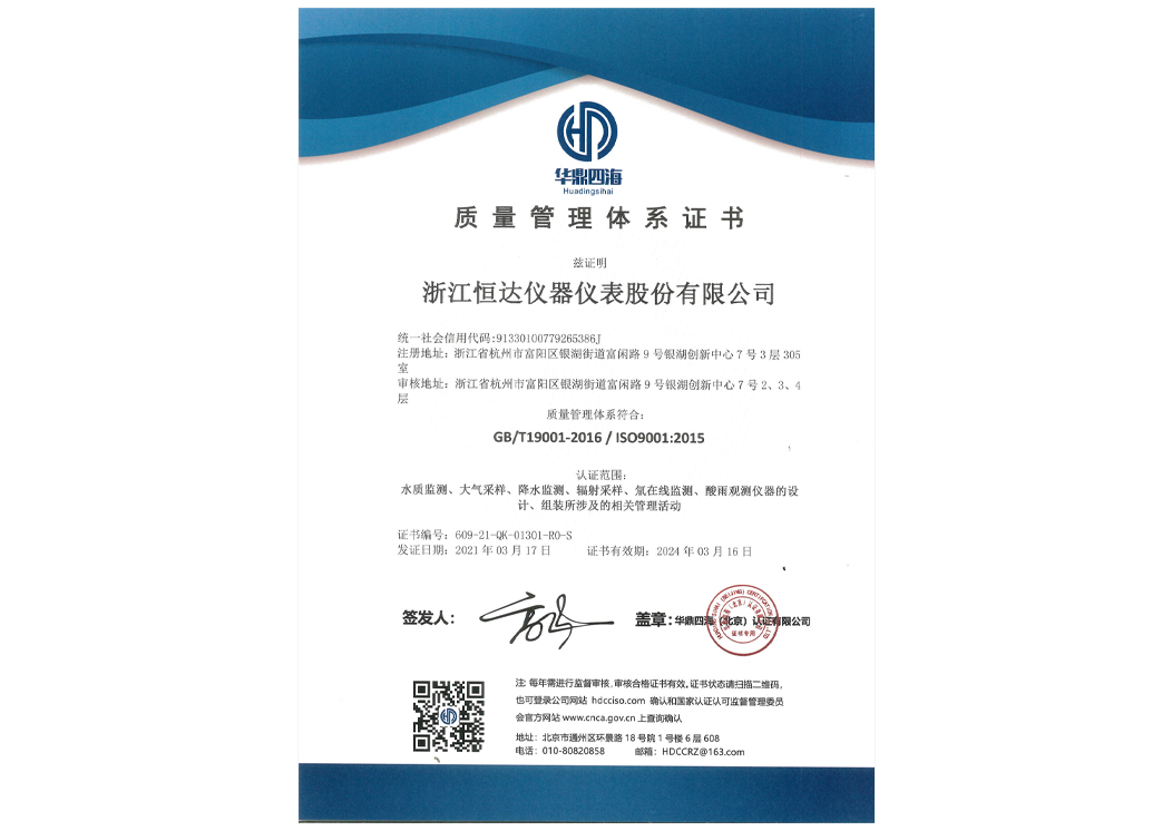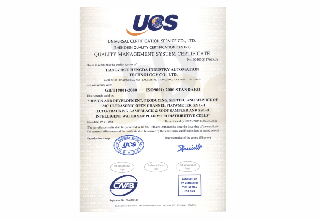 質(zhì)量管理體系證書(shū)
