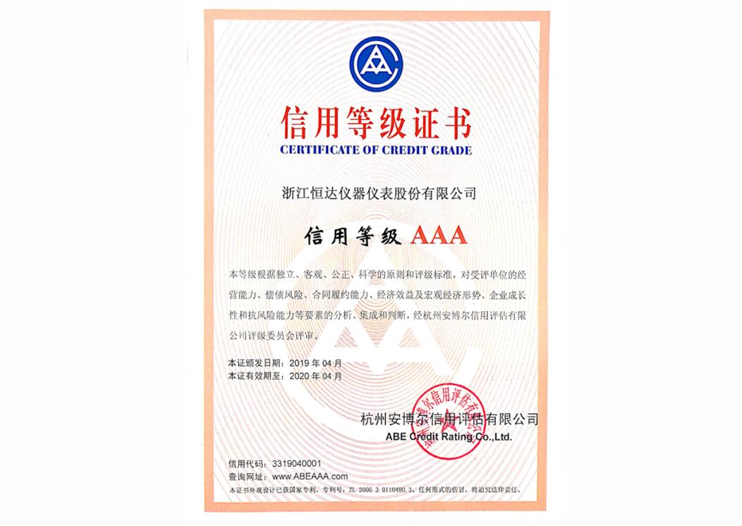 信用等級(jí)3A證書(shū)