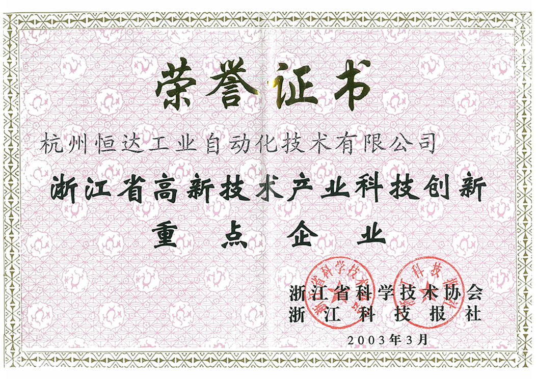 浙江省高新技術(shù)產(chǎn)業(yè)科技創(chuàng)新重點(diǎn)企業(yè)