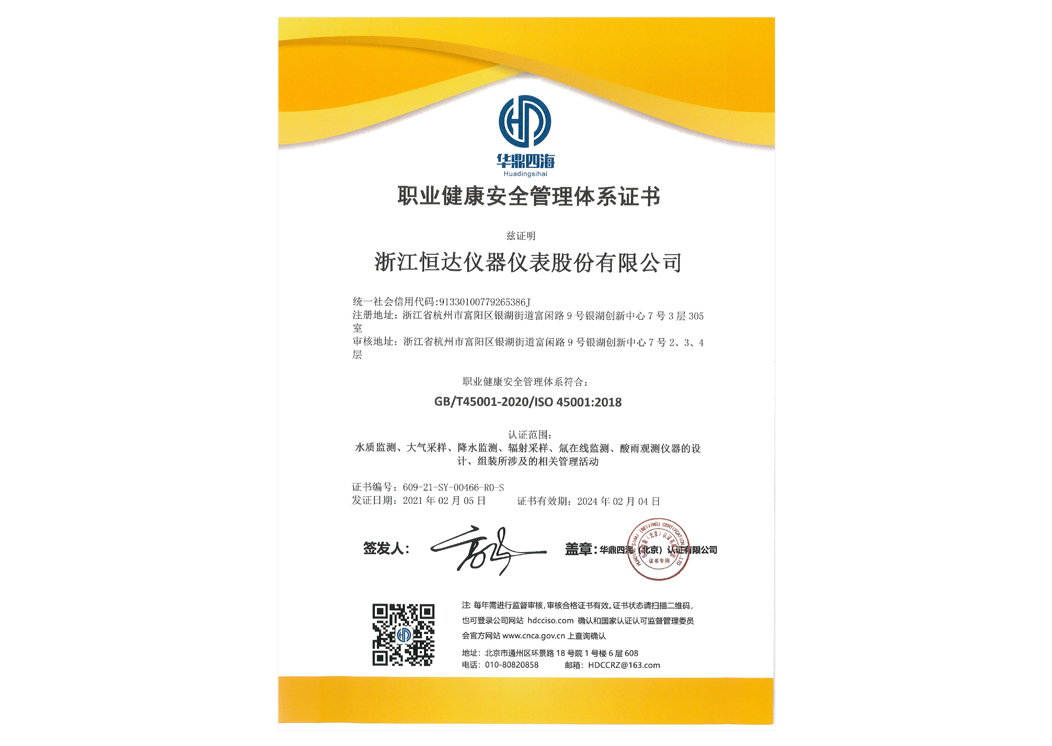 職業(yè)健康安全管理體系證書(shū)